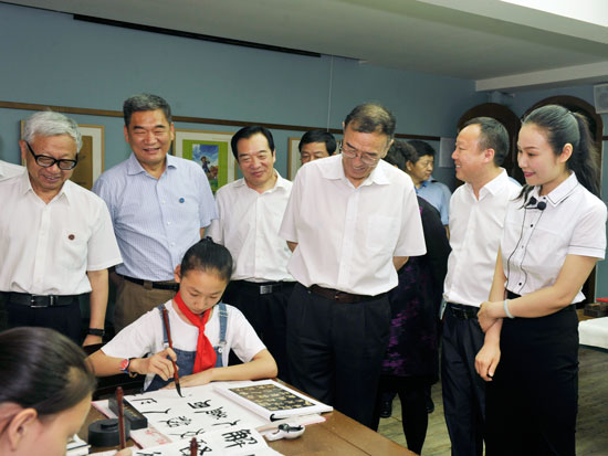 随后,调研组一行来到管城回族区第一回民小学,认真听取工作汇报,饶有兴致地参观了阅读室、科普室和民族文化展室,并和小学生亲切交谈。近年来,该小学每学年开设10节民族团结教育课程,每月第一周的升旗仪式紧紧围绕民族团结开展爱国主义教育,让民族团结根植小学生的心灵。