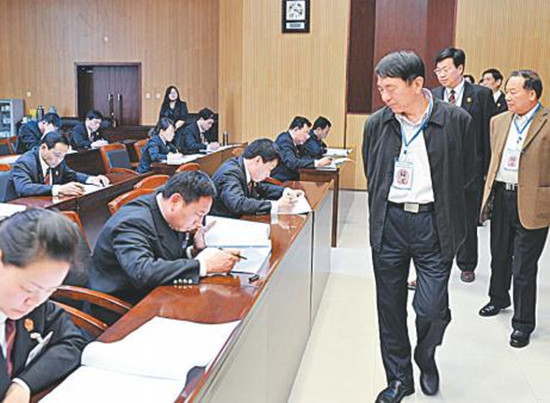 2011年4月25日,市人大常委会对市中级人民法院提请任命法律职务人员任前考试进行巡考。